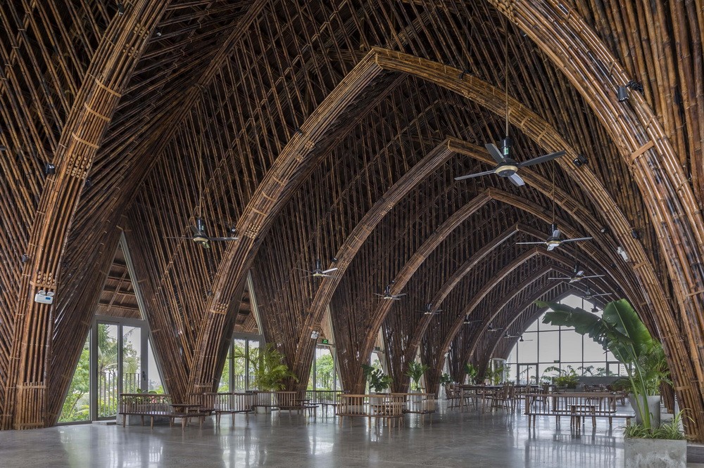 地面覆盖着可渗透的沥青,让水瞬间吸收并流到地下,保持广场干燥,没有水坑。石上纯也说,希望使用者坐在广场内的地面上感到舒适,鼓励他们花时间欣赏不断变化的元素,并创造一种与建筑高度关联的感觉。他说:“人们可以自由地坐在倾斜的地板上,站起来,甚至躺在建筑物内,像在一个舒适的山坡上,感觉就像一张大床,身体和环境融为一体。”