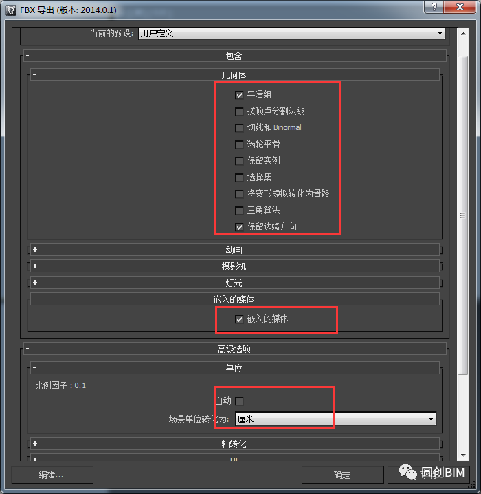 ①3DMAX软件导入.FBX文件时需注意事项如图: