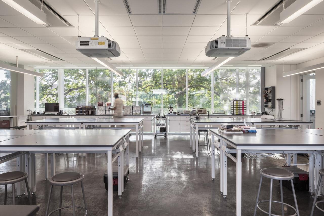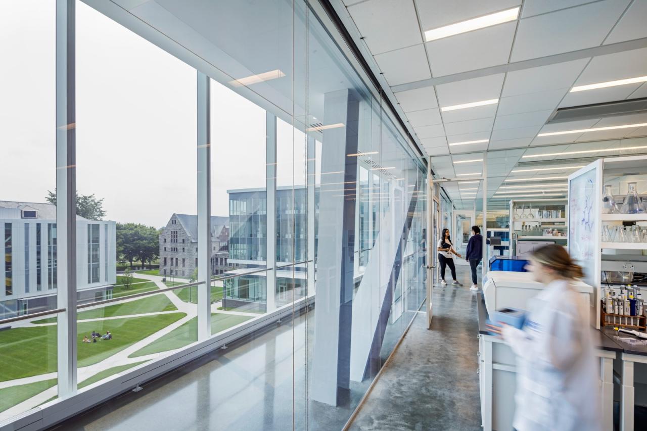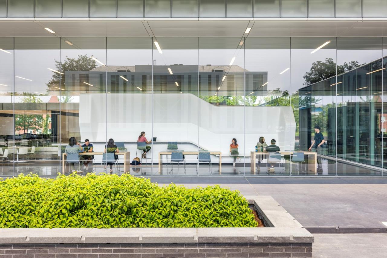 低层包含透明的主动学习实验室、教室和项目工作室,围绕着底层的中央公共区域组织。 高层研究楼层被设计成可重构的开放式阁楼,并设置跨学科办公室群,以促进协作和融合。