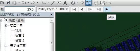 但按此设计方案,用光伏专用设计软件无法验证出组件间的阴影遮挡;光伏电站对组件阴影遮挡的有硬性要求,如果某个组件存在日光遮挡,被遮挡部分的太阳能电池不仅不能产生电能,还将因电阻效应消耗电能,光伏组件的寿命也会缩短;根据光伏电站设计规范,“光伏方阵各排、列的布置间距应保证每天9:00-15:00(当地真太阳时)时段内前、后、左、右互不遮挡。”冬至日太阳阴影最长,因此选择在冬至日校验阴影遮挡。Revit软件恰有日光分析功能可用于光伏电站组件阴影遮挡的定性验证。具体操作如下: