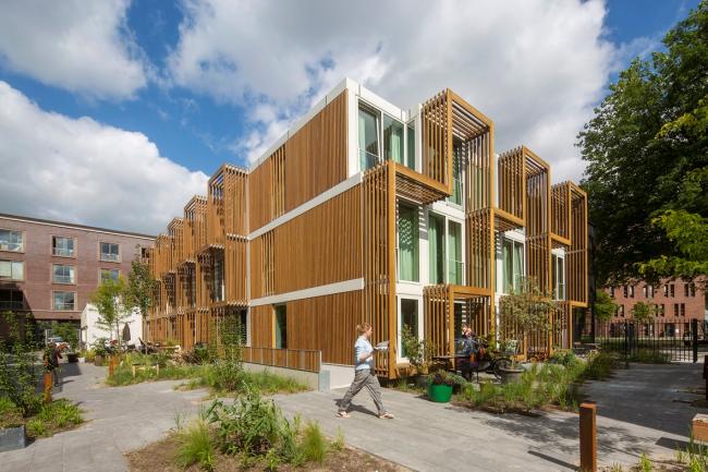 本次项目的公寓位于阿姆斯特丹市中心的福芬公园附近,总共可以容纳八户人家居住其中。场地是一个小庭院,后面是一座以前的校舍,后来变成了住房。这8栋独立住宅建在一家被拆除的小工厂的空地上,而原有的工厂则被用作一家媒体公司的工作区和工作室。隐蔽和封闭的空间让我们想起了中世纪典型的阿姆斯特丹庭院。新的私密庭院设计是通过与Hosper景观工作室以及学校的居民共通商议设计完(BIM设计)成的。公寓楼的业主除了拥有一个小的私人外部空间以外,其余都是公共空间。
