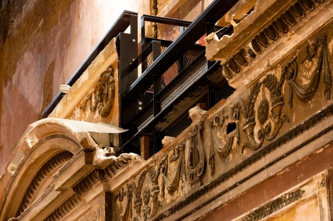这些之前被忽略的空间有自己独特的乐趣和历史意义。规模宏大的东院与西侧棕榈园相对,曾是宏伟的展览空间,也是维多利亚时代民众所热爱的舞会和奇观的广泛体验的一部分。这座19世纪的剧院80余年不见天日,拥有浓重的岁月印记和氛围。这是一个真正的“再发现的空间”,一个经历几十年废弃和灾难性的1980年大火后奇迹般的幸存者。