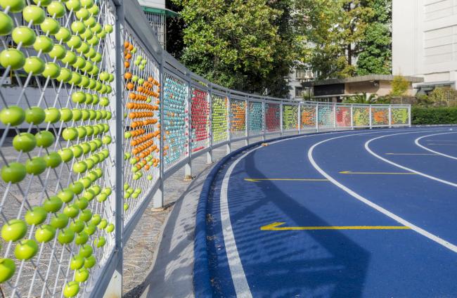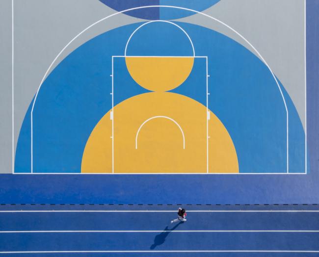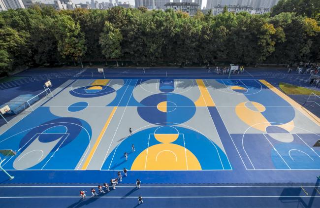 濮家校区是体育传统名校,所以我们和学校都想把运动的元素融入操场当中,在建筑和运动场地设计中出现了高饱和度的颜色和不同形式的线条和几何图形.