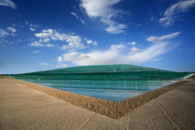 又见敦煌剧场通体湛蓝,坐落于无尽的戈壁荒原之中,恰如沙漠中的一滴水,以其珍贵无比的含义,隐喻着敦煌对于世界文明的意义。建筑最终自然地发展成为场地的一部分,并与当地的自然和文脉产生有意义的对话。建筑与场地之间对比所产生的强烈反差,甚至会使观者产生时间停滞的感觉。这种体验超越了过去与未来,引发了自然、建筑、人这三者的时空共鸣。
