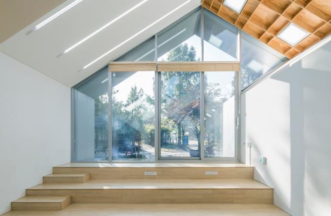 结构不是孤立的三角形,而是相互依赖沟通的结构。这创造了自然和原始的建筑原型,象征着沟通、自然、儿童和成人。空间单元是书架,也就是墙本身。书架构成了空间,同时也成为了一个分区。在整个历史中,这堵墙充当了空间的分隔物。而在Hannae 图书馆中,墙体成为了贯穿空间的迷宫,不断地连接和断开。