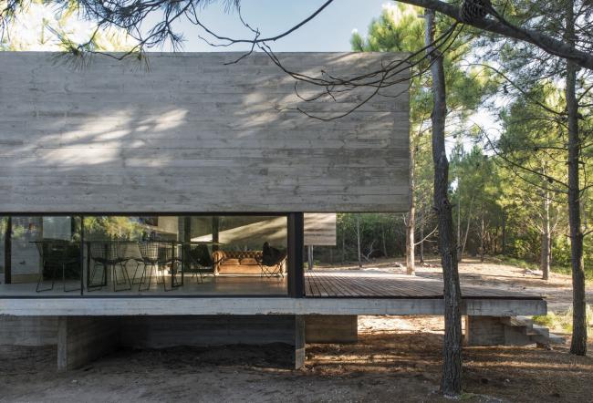 由于事务所打算保留该地块内的茂密松林,只有需要施工区域内的树木被移走了,以便建造这座房子。业主是一个由两个家庭组成的团体,他们要求设计一座既可以住宿又可以出租的房子。