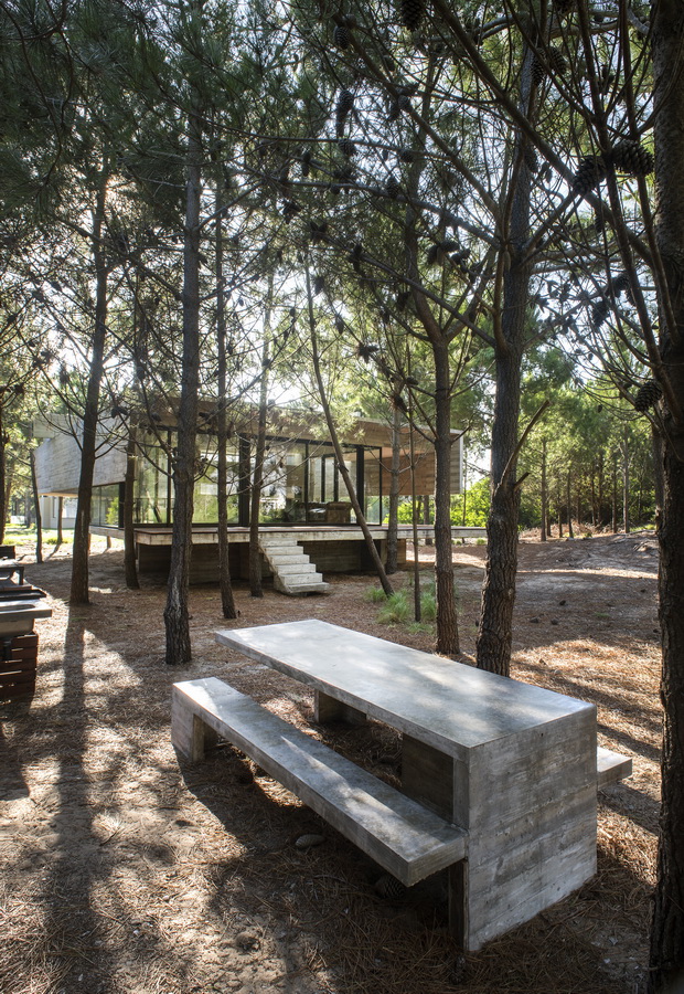 S+J住宅位于海滨社区Costa Esmeralda内,该建筑是一个私人开发项目,位于皮纳马尔市以北13公里,距布宜诺斯艾利斯市4小时车程。尽管地块内的土地几乎是平坦的,但它却轻轻地向后倾斜。