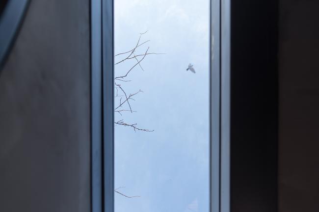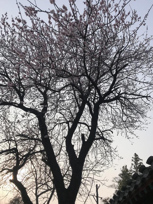 新建茶室使用了钢结构,结构构件外露,强调空间中的线条关系,与原建筑的木结构相呼应。露台栏杆被缩小了高度,让饮茶者入座后,隐匿于山墙之下,融于环境之中。双层茶空间不仅加深了与杏树的对话,创造了不同的喝茶体验,还可在露台上远眺钟鼓楼,在空间上又一次与城市产生连接。