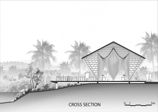 这座位于火烈鸟戴莱度假村内的竹亭最初是作为室内展览馆使用的,目的是在旅游博览会上对外宣传度假村。由于距离博览会的开办时间很短,业主方要求建筑师设计一个成本低、材料轻、便于转移的展馆,方便后期多次进行拆卸和重复使用。