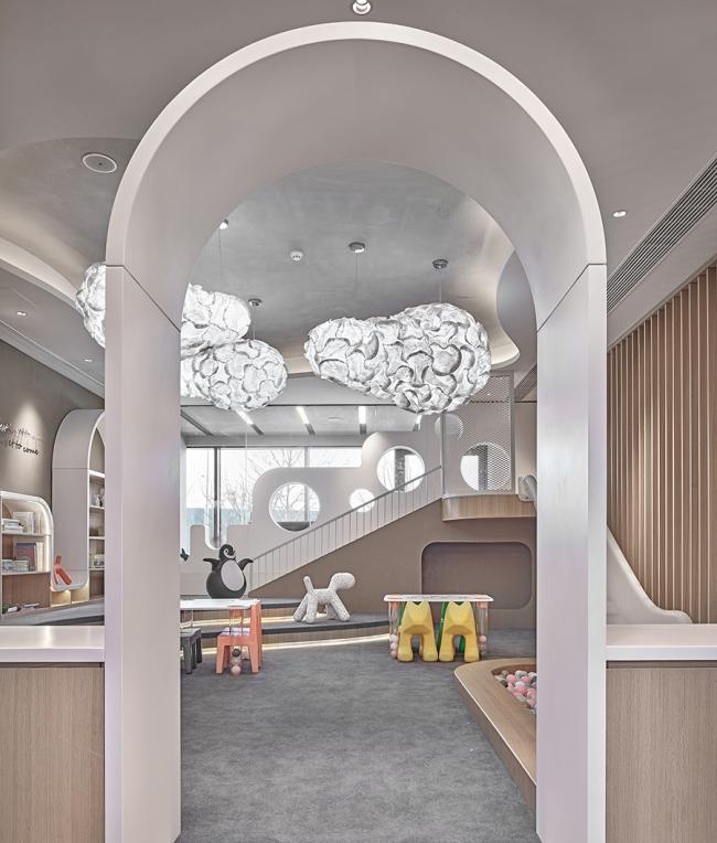 沙盘区的另一侧是寓教于乐的儿童活动室,在弧形趣味的书墙造型下,运用意大利家具品牌ME TOO与LEGO结合,童趣而不失烂漫。