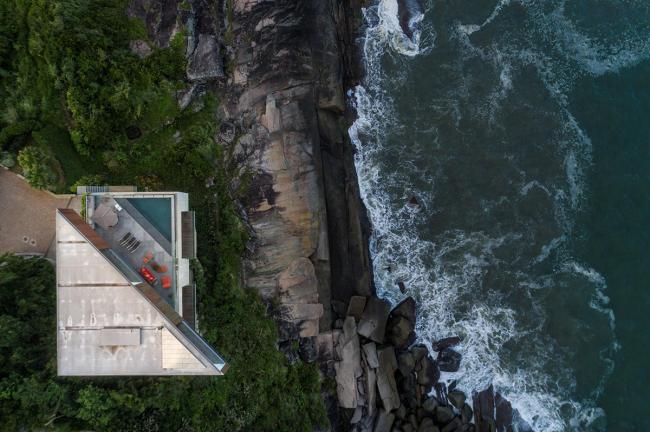 半岛之家是一个位于圣保罗附近沿海城市的周末度假住宅,由三个堆叠的抽象体块组成,这些体量被精心布置在俯瞰大西洋的陡坡上,尽可能带给地形最少的负面影响。