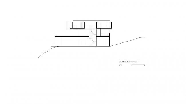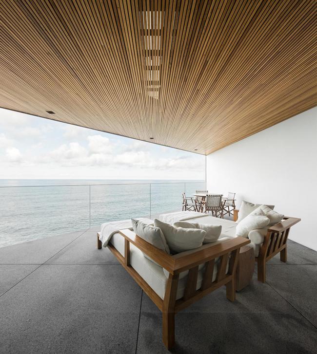 这座名为半岛之家的房子分为三个部分:矩形底座和三角形上部体块,有更多的私人区域,以及公共区域所在的透明空间。悬挂的三角形体积创造了阴凉的阳台空间,避免了阳光直射,而更封闭和整体的底座提供更加私密的空间。两者之间的张力产生负透明空间,与景观在视觉上进行连接。