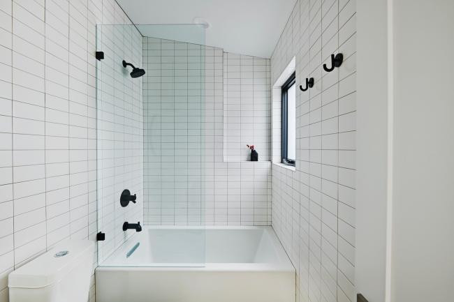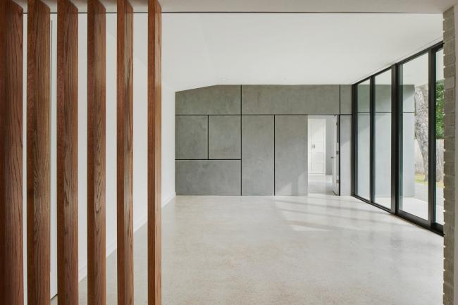 书房是一个明亮、自然过渡,将现有的餐厅与摄影工作室连接起来。木质的屏幕漂浮在石头门槛上,标志着原始房屋的范围,同时增加了自然的色彩。为了最大限(BIM建筑)度地利用空间和功能的需要,一个新的洗衣房和完整的浴室被塞进书房的后墙。