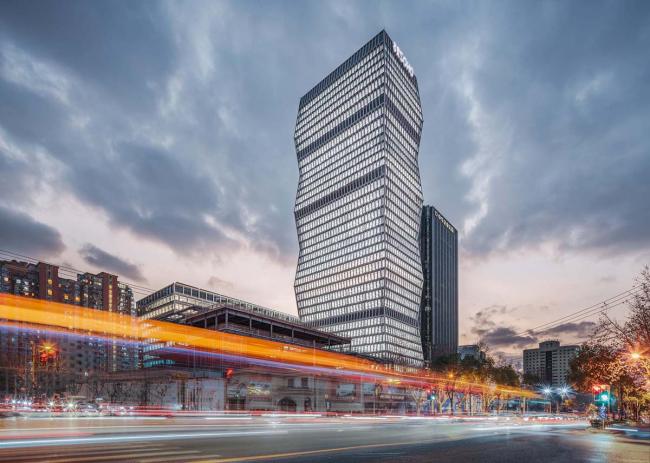项目由38层的办公塔楼和设置商业与地下停车场的12层裙楼组成。景观设计充分利用与公园的毗邻性,延伸在苍翠繁茂的自然环境中休息、漫步的体验。