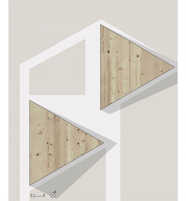CLT结构是自然加工的。地板、墙壁和屋顶展示了它们的木质表面,因此室内和建筑围护结构之间没有区别。立面开口遵循功能,在需要隐私的地方关闭,并打开以获得全景。