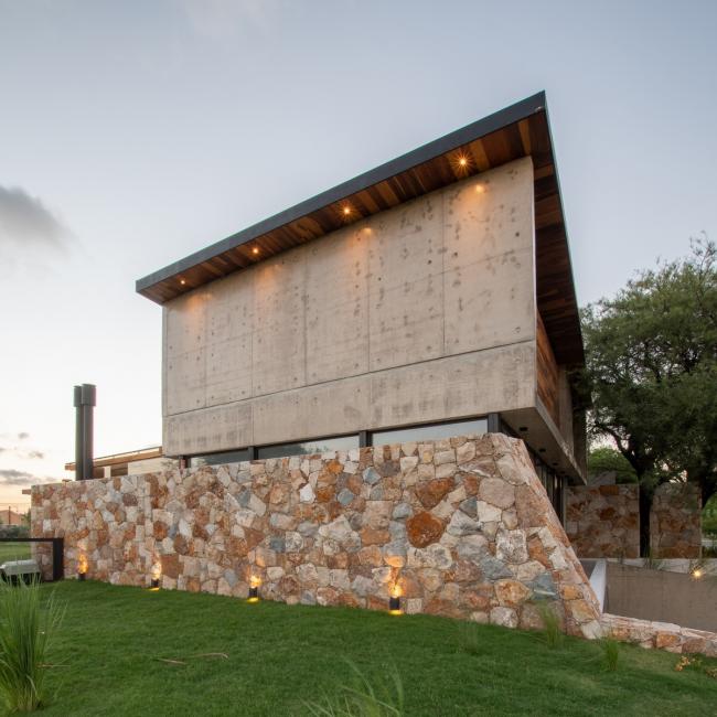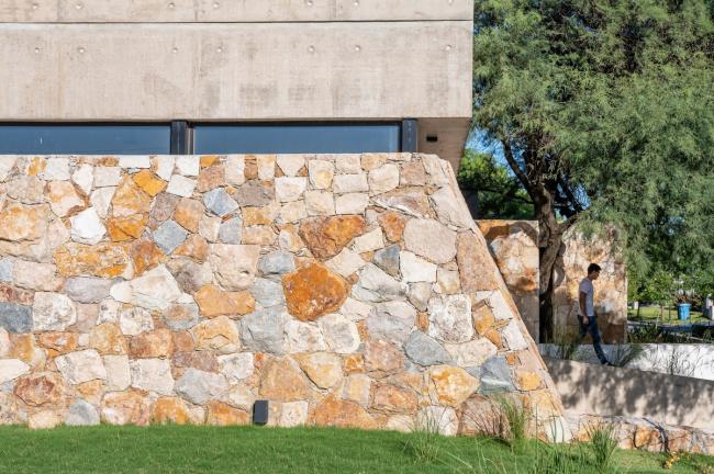 地下层内是有顶的汽车库,可以停放三辆车,带有入口坡道,斜坡也可作为额外的停车位,坡道、仓库和未来的酒窖通过树木以半露天的方式进行遮阴和保护。