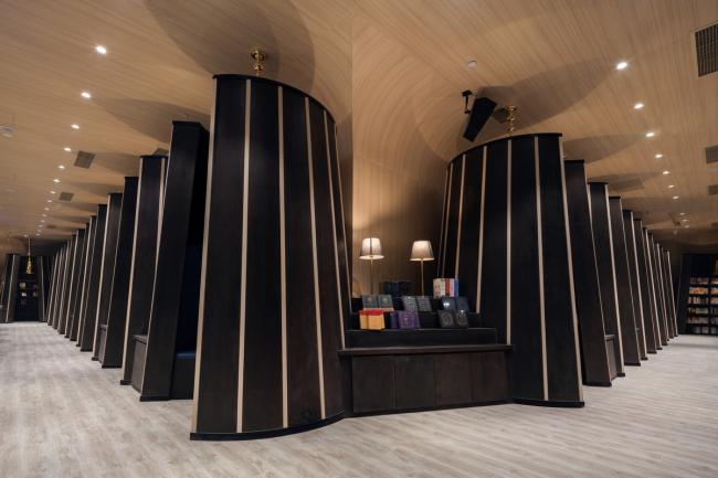 从“山形阶梯”走到4F,就是休闲区咖啡阅读区。在这里端上一杯香茗伴着一抹淡淡的咖啡香,心绪如清泉般平静。四周利用“灯罩书架”围合成了一个个私密的卡座。在这里人们可以在此与朋友相聚、享受休闲时光。休闲区咖啡阅读区相连的就是精品阅读区了。这里你可以领略到各个领域先贤、大师的人生智慧,接受一场心灵的洗礼。