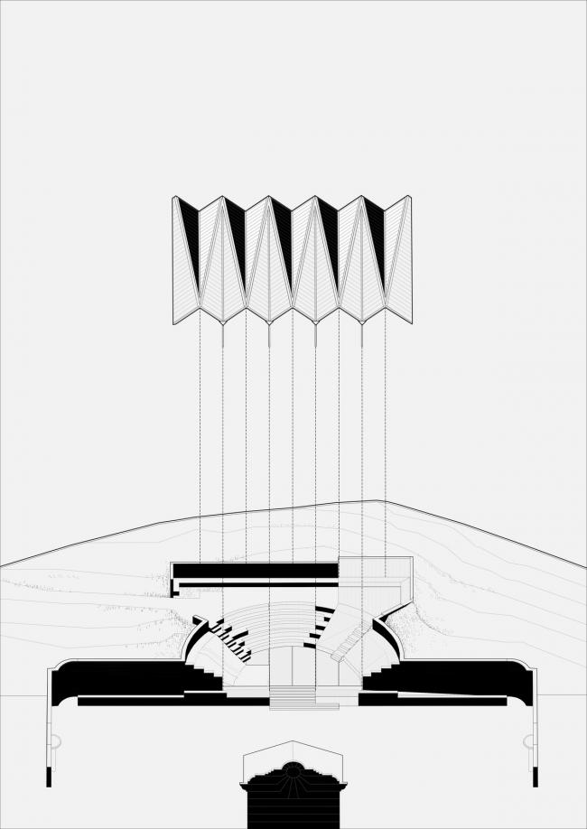 新的休闲区域布置遵循空间顺序。通过设置不同但又相互联系的空间,可以增加旧礼堂的用途。基于此种考虑,上部区域布置了康体设施,适宜老年居民活动。露天看台则有双重功能:提高了座位的舒适性,也方便观看公众演出(BIM设计)的观众照看婴儿。