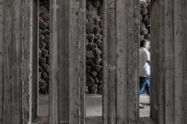 西立面将有趣的透明性同不透明的、轻盈的体量感相结合,为人们提供全景视野。立面由框架进行分隔,通过置入一排由当地玄武岩制成的巨柱实现,并通过独特技术处理使这些支柱作为支撑的结构要素。玻璃幕墙绕过巨柱对空间进行围合,透过巨柱,游客可于石框与幕墙之间行走,体验景致。在室内条件不便的情况下,入口空间将为参观人群提供场地的初步介绍,通过借助视听引导装置,在那里游客可以欣赏到古老犹太教堂的拱形结构。