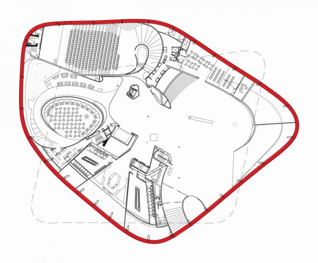 在博物馆内部,参观者首先看到的是在宽敞的白色门廊中展出的罗丹的《思想者》雕塑,它鼓励着参观者继续探索博物馆。沿着盘旋在博物馆六个楼层中的连续步行道向上走,参观者就会发现梵高、马蒂斯、莫奈和达利等大师的作品。坡道一直通往顶楼展厅,这里有着由众多雕塑组成的景观,而且环境雅致、自然光线充足。