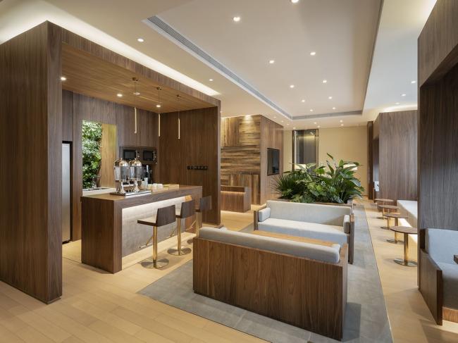 The Nature Lounge 是本设计的主要概念,在构筑简洁空间的同时,融入原木与绿色等“自然”元素于其中,意在创造出如酒店行政酒廊一般的充盈着非日常感的空间。