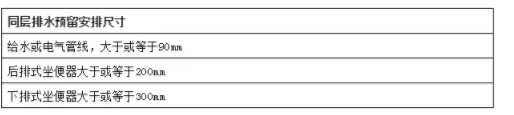 《标准》规定,整体卫生间尺寸的型号说明为内部净尺寸,内部净尺寸的基本模数为100mm的整倍数。整体卫生间中宜采用同层排水。其中整体卫生间壁板与其外围合墙体之间应预留安装尺寸应符合如下规定。