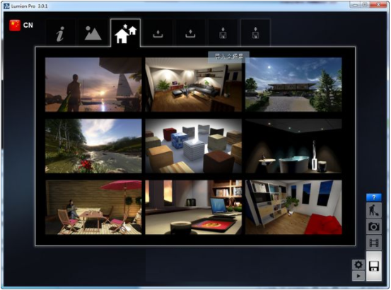 虽然 Lumion 提供了多国语言模式,使用时可灵活对语言进行切换,但其中文界面并不完美,存大大量问题,最大的问题就是,汉字显示不完,仅显示一部分,如:将”天气”显示为”天”,将“太阳”显示为“太”等等,使这些操提示,实难让人理解,看上去一头雾水。
