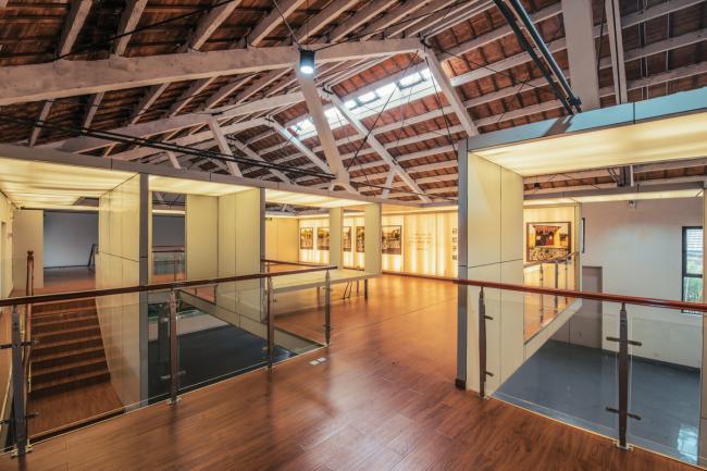由于净高有限,充分原建筑内部借用屋架结构间的空隙,灵活植入夹层空间,进而保证夹层的展示高度以及通行高度。