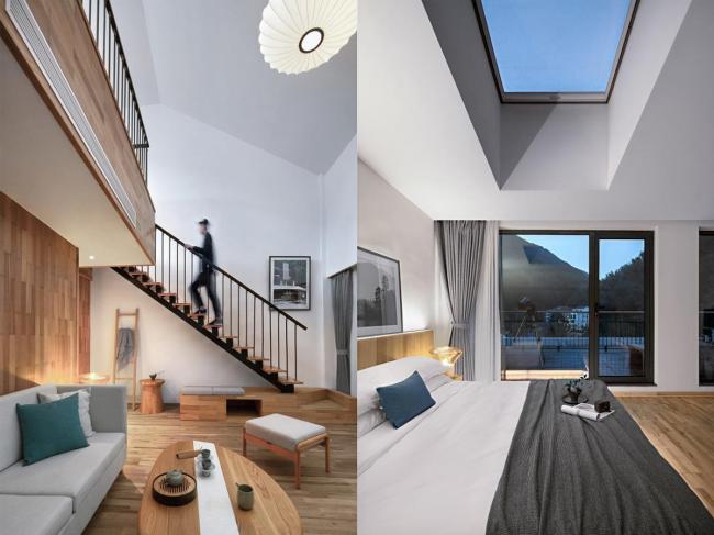顶层走廊西端的原前后四间客房合并,设置为拥有三个阳台,三(BIM工程师)面山景的尽端式超大套间,加上场地内临省道的原辅楼二层内设置的溪景套房。这样,原来的30间客房减少为15间(BIM工作),正好满足了地方政府对民宿项目的要求。(注:根据临安地方关于民宿建设的规定,单个民宿项目内的客房数量不可超过15间)