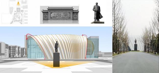 图书馆通过玻璃幕墙、穿孔金属板相结合,形成各立面的特色:北立面面向主轴线和周恩来雕像,运用中国古典建筑“影壁”的概念形成进入图书馆的“过渡空间”,同时成为周恩来塑像的背景,起到更好的烘托作用。