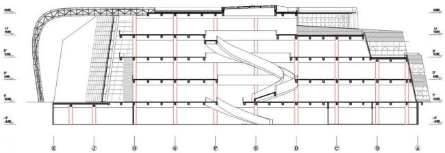 在建筑北侧和西南侧设置图书馆入口,东侧设置货运入口,空间组织注重建筑空间的趣味性,在建筑的西南侧设置下沉广场,有效的利用了地下空间,巧妙的解决了地下空间出入口问题。