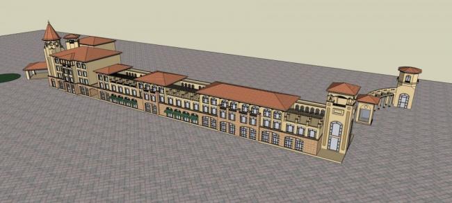 Sketchup商业模型|多层商业街,西班牙风格,古典风格