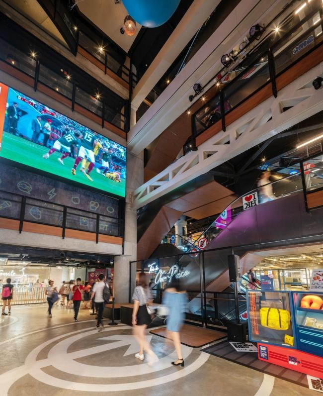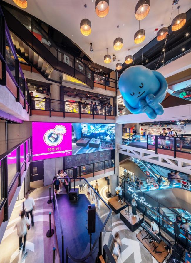 由执行董事柳景康设计,位于香港的T.O.P – This is Our Place将80年代前政府设施,改造为集现代办公塔(BIM)楼和商业娱乐中心于一体的建筑。像素化的裙楼立面呼应了地铁站的经典配色,且大楼地下一层与旺角地铁站相连。为了吸引年轻人,新中庭提供了聚会和表演的场地,并连接到五楼的露天表演区。Aedas Interiors还参与了办公区域的室内设计。