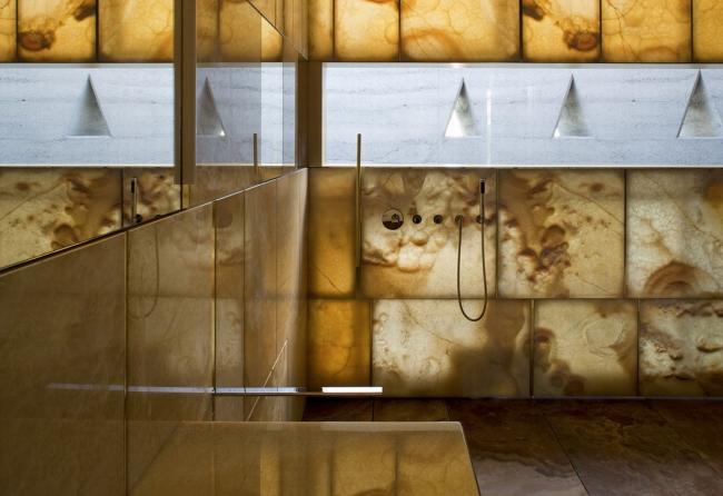 体块,空心体块,带刻面的体块,带裂缝的体块和用铰链分开的体块告诉了我们如何从中庭平面到分开的体块来给这个家庭定义出它的品质,还包括所有的设备和设施,只要用一只手或是眼睛进行触摸就可以感觉到。例如,当用指尖来触碰一个波状外形的青铜器的抛了光的表面时才能体会到这件物品。拥有长长裂缝的光面钢板天花板在晚上同样会展示出它的光亮。正是由于这些看上去不可能的体块的存在,让这栋建筑成为了索诺兰沙漠中的一个醒目标志。当我们的客户和他的客人进入到这里时,我们希望他们总是会发现一些珍贵的东西,为他们带来一丝惊喜。
