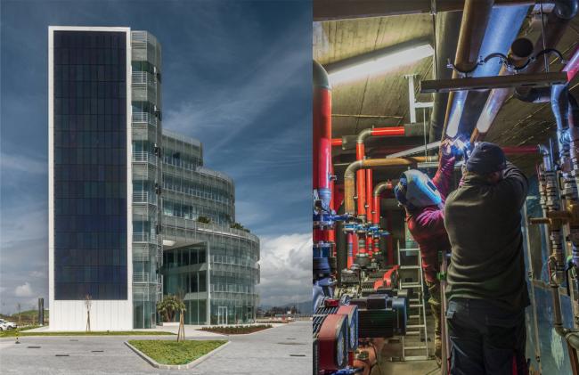 显著的是,该办公建筑基本没有甲烷气体植物,这些植物在意大利传统上被用于供热系统。光伏生产覆盖了冬夏空调和照明几乎所有的能源需求(超过80%)。由于特别的建(BIM工程师)筑解决方案,挂板成为了该建筑的首个技术系统。这里科技云集,前沿的设备,采用了LED照明系统的智能壳系统,配合空调和再生热交换的地热系统。可再生能源的混合和致力于限制能源消耗的策略让这个总部树立了托斯卡纳地区可持续建筑的标准。该建筑正在接受LEED金奖的可持续性评级认证。