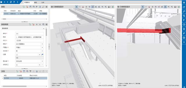 对于该类大型工程另外一个重中之重的管理要点,就是现场检查安全质量问题的审核流程。对于现场存在的安全隐患以及质量问题,在检查期间,必须记录其发现时间,优先级、严重度、提出人、负责人、现场位置、现场图片或其他现场数据,相关的施工组织计划,并且与模型构件关联等,在平台中形成问题库和隐患库统一管理。