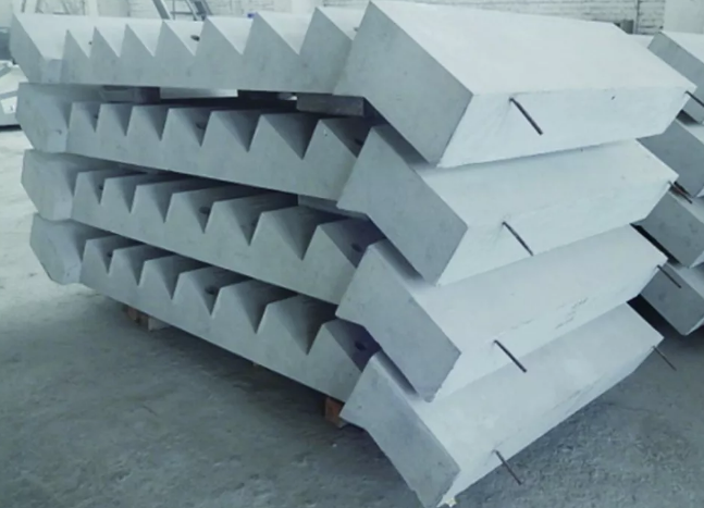 (4)带高帮的L形板或U形板成型,先浇筑水平部分混凝土,压上盖板再浇筑高帮部分混凝土。振捣时尽可能不使高帮部分的混凝土向水平部分流动。