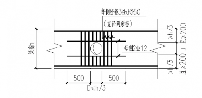 图3.2.4-1梁上洞口加强筋
