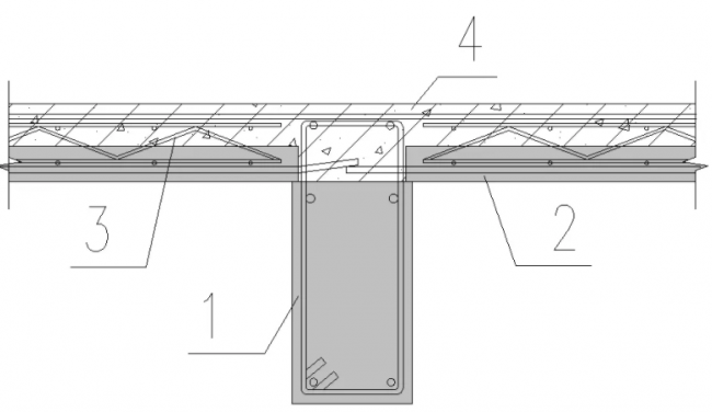 1-预制叠合梁;2-预制叠合楼板;3-桁架;4-楼板现浇层