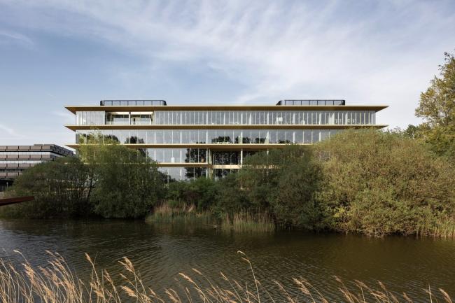 Powerhouse Company建筑事务所这个面向未来的设计具有高效灵活的布局,可以最优的支持各种类型工作的发生,以实现员工彼此之间的创新和协作。每层都设有落地玻璃窗以保证充足的自然光线,同时(BIM教程)可以欣赏到自1996年以来被列入联合国教科文组织世界遗产名录的阿姆斯特丹防线的全景。该建筑物的全玻璃幕墙搭配线条流畅的悬挑屋檐,营造出建筑独特的轮廓。在每个楼层,立面都有一部分向内凹,以留出露台空间,使用户可以在每层从室内直接进入到室外空间。