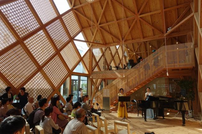 道路中轴线使用的地砖回收自旧吉野和服店。沿着街道的前面是大厅,其后方是吉野和服店家族捐赠的一架大钢琴。大厅内没有固定的座位,也没有任何声音控制设备。然而,从街道上可以很方便地进入内部,且大厅空间具有多种功能。从交响乐团音乐会到当地节日舞蹈的排练场所,大厅可以服务于城市公共生活的方方面面。这里是人们聚集的地方,是当地社区的新中心。