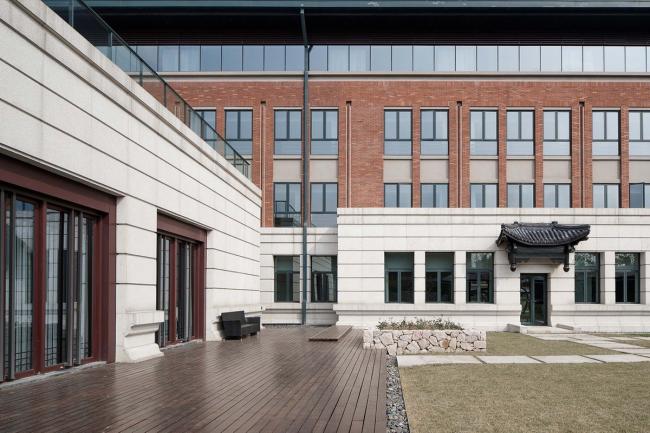 办学模式向西方“书院”溯源的海宁国际校区在整体规划以“理性为主,自然相间”为前提,西区书院的设计融于其中并极富特色,从规划整体性符合的思考到传承与沿袭老浙大建筑中“以现代的手法,用砖石为材料,对古典语汇作新的阐释”的设计理念,既有设计体系的探讨与深化,更有基于项目本体的演变与创新;既有建筑实体的象征性直接表达,又有庭园空间的戏剧性细微诠释。统于一体,而竞相争辉,集情理而合一。