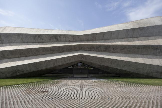 从高速公(BIM培训)路的角度看来,建筑是一个折叠形状的均匀混凝土体块,没有可见的开口来定义它的功能,在背面,它向松树林敞开。