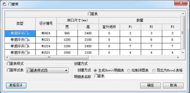 在完成三维模型设计的基础上,设计师可通过软件的相应功能,根据三维模型数据自动生成传统二维设计中的相关图表类设计成果,此类代表性功能包括:门窗表、门窗大样图、汽车坡道展开图等。