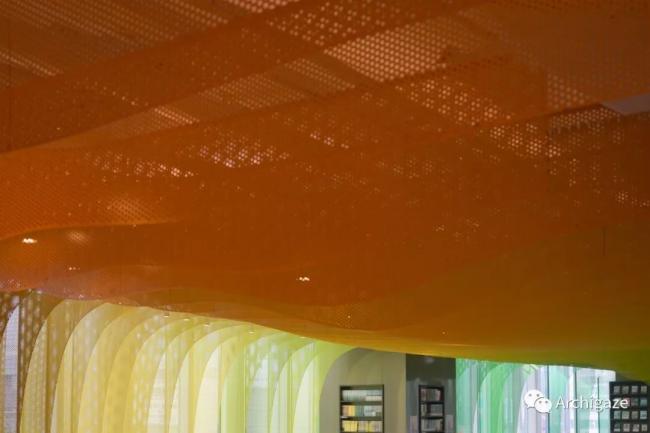 这是一家位于苏悦广场南楼的一家书店。通过穿孔金属板进行空间的分隔,划分出不同的单位阅读区,给读者更个人、私密的阅读空间。