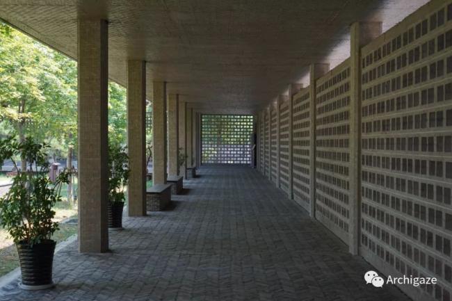 建筑体量按照功能的区别拆分,这让不同的院落得以置入,并且建筑师还利用风雨连廊让他们彼此联接。