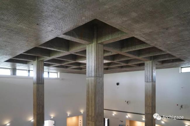 从建筑内部可以感受到镂空立面投射到室内的光影。
