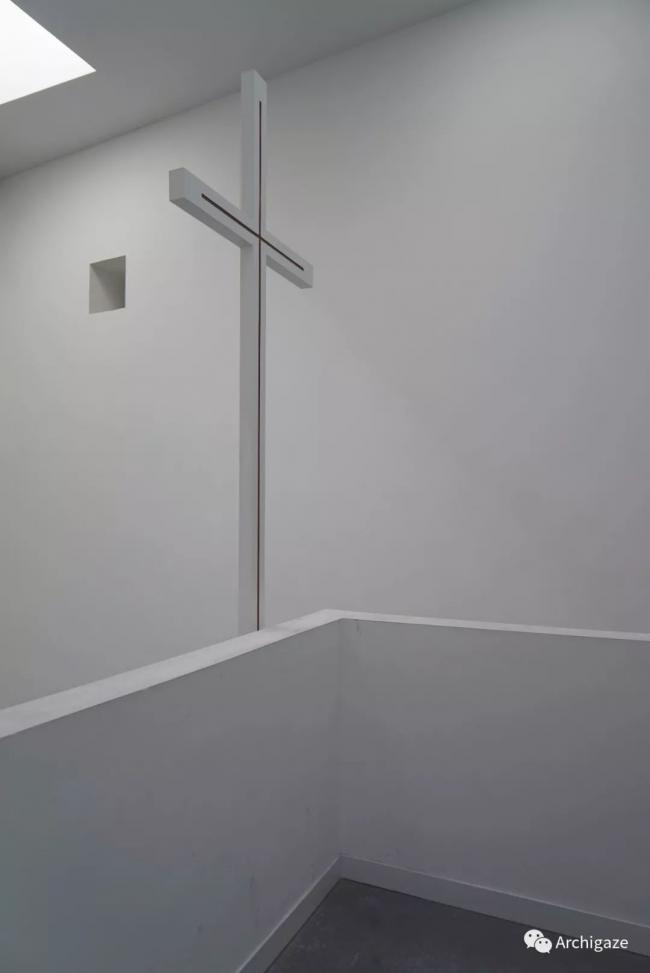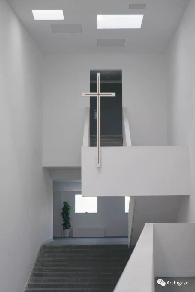 教堂建筑主体由雕塑性几何体构成,营造了庄重肃穆的氛围,为的是配合信仰给人带来的精神感受。