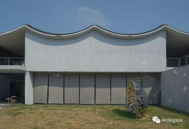 苏艺的设计概念可总结为“一颗珍珠、一段墙和一个园林”。建筑整体呈现月牙形,“月牙”朝湖心开口继而环抱住一颗“珍珠岩”,整体建筑简洁、大气。