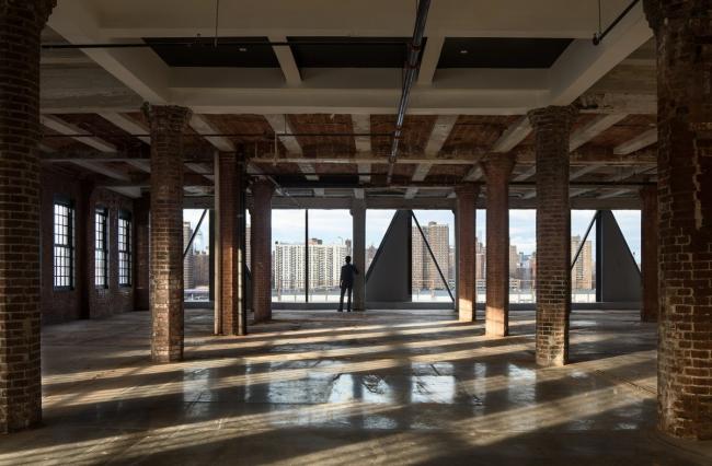 这里曾是Arbuckle Brothers炼糖厂,它的历史可追溯至1898年,最初由George M. Newhall工程公司设计,其巨大的体量直接与河水相连,以供船只交付货品及服务时停靠。1925年,它又被改建为酒厂。在这之后不到十年的时间里,该建筑的正面被拆除,其余三面原始外立面以及一面面朝东河岸的隔墙得以保留。此后,该建筑被空置,并任其处于失修状态长达50年,直至1991年被家族企业Triangle Assets买下。
